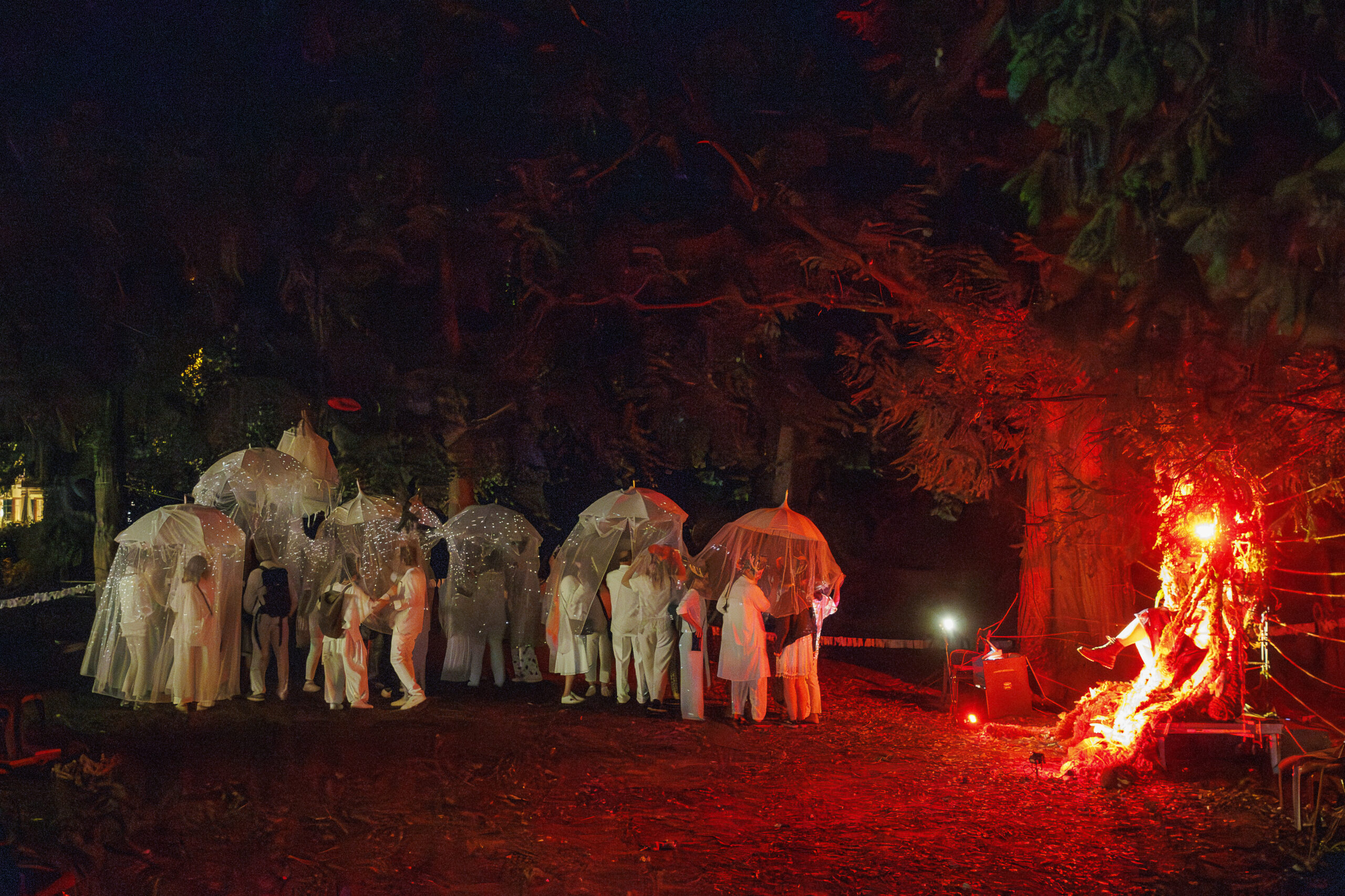 Konzeptionell beginnt der Abend mit einem spielerischen Entrée. Bei Einbruch der Dunkelheit wird ein aufwendiges Schattenspiel aufgeführt. Nach ersten Tänzen teilen wir das Publikum in vier Gruppen auf, die durch den Abend geführt werden. Den Park versetzen wir in atmosphärisches Licht, er selbst wird zum Schloss mit unterschiedlichen Räumen. Aber keine Angst, alles im eigenen Tempo und nach eigener Begehrlichkeit…